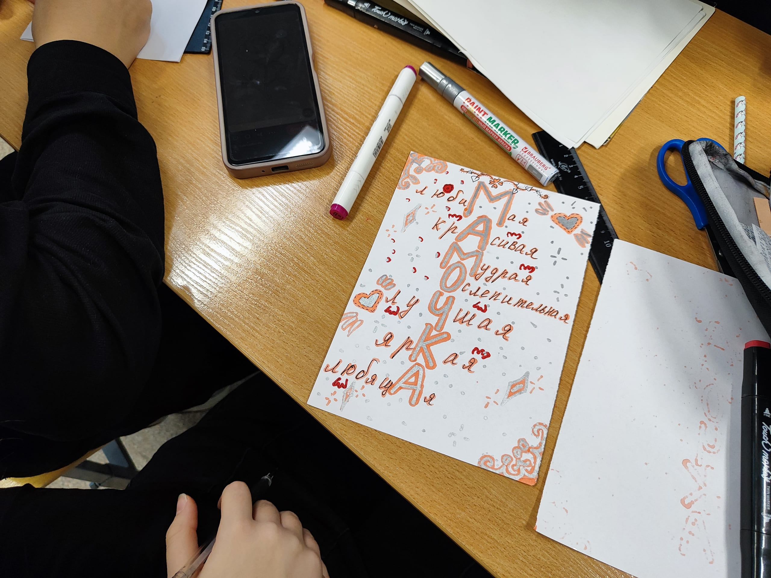 - Учащиеся 6 классов подготовили открытки с теплыми пожеланиями своим мамам;
