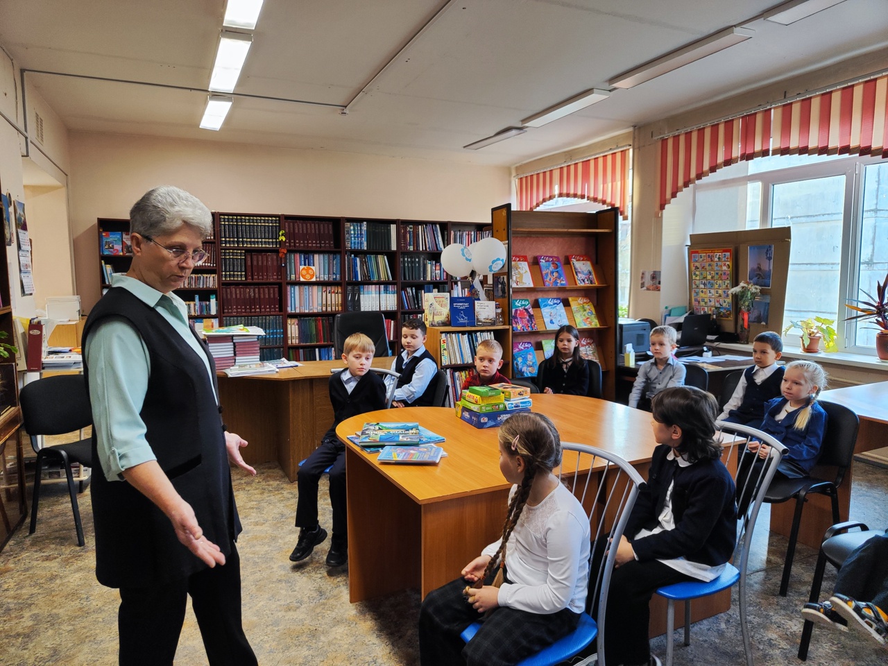 В преддверии Международного дня школьных библиотек наша библиотека открыла свои двери для первоклассников, а библиотекарь - Татьяна Васильевна Лёшина провела для юных учеников экскурсию, рассказала откуда происходит слово «библиотека», какими были самые первые книги, как правильно с ними обращаться и познакомила ребят с некоторыми книгами, а так же ответила на вопросы.
