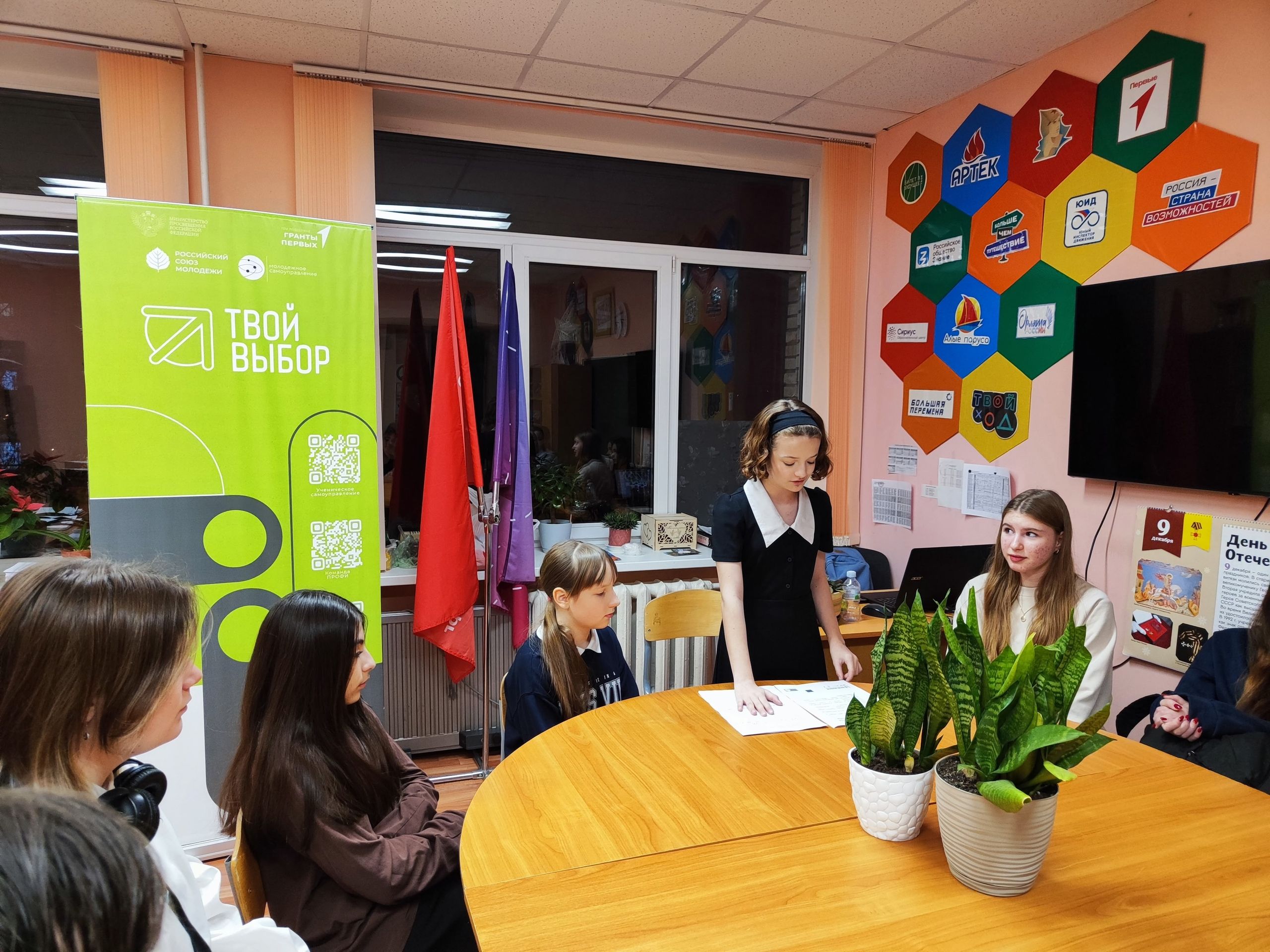 Милана, положив правую руку на положение о Совете старшеклассников, дала клятву перед обучающимися и поблагодарила ребят за оказанное ей доверие.