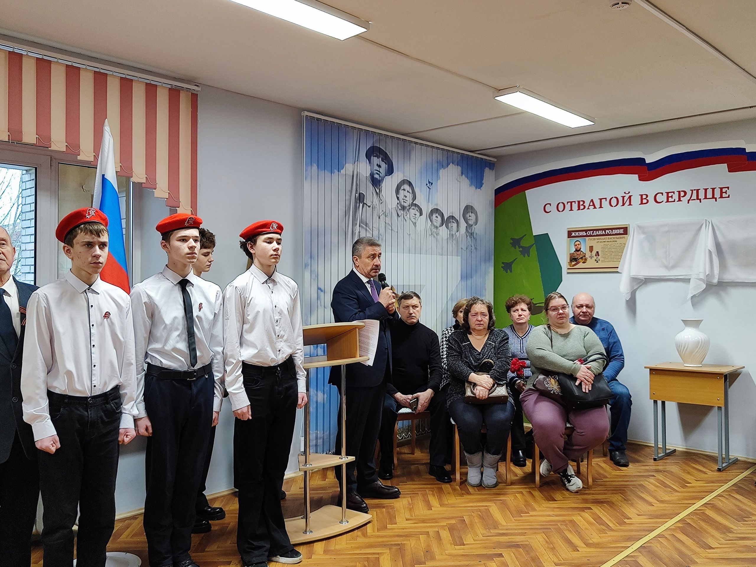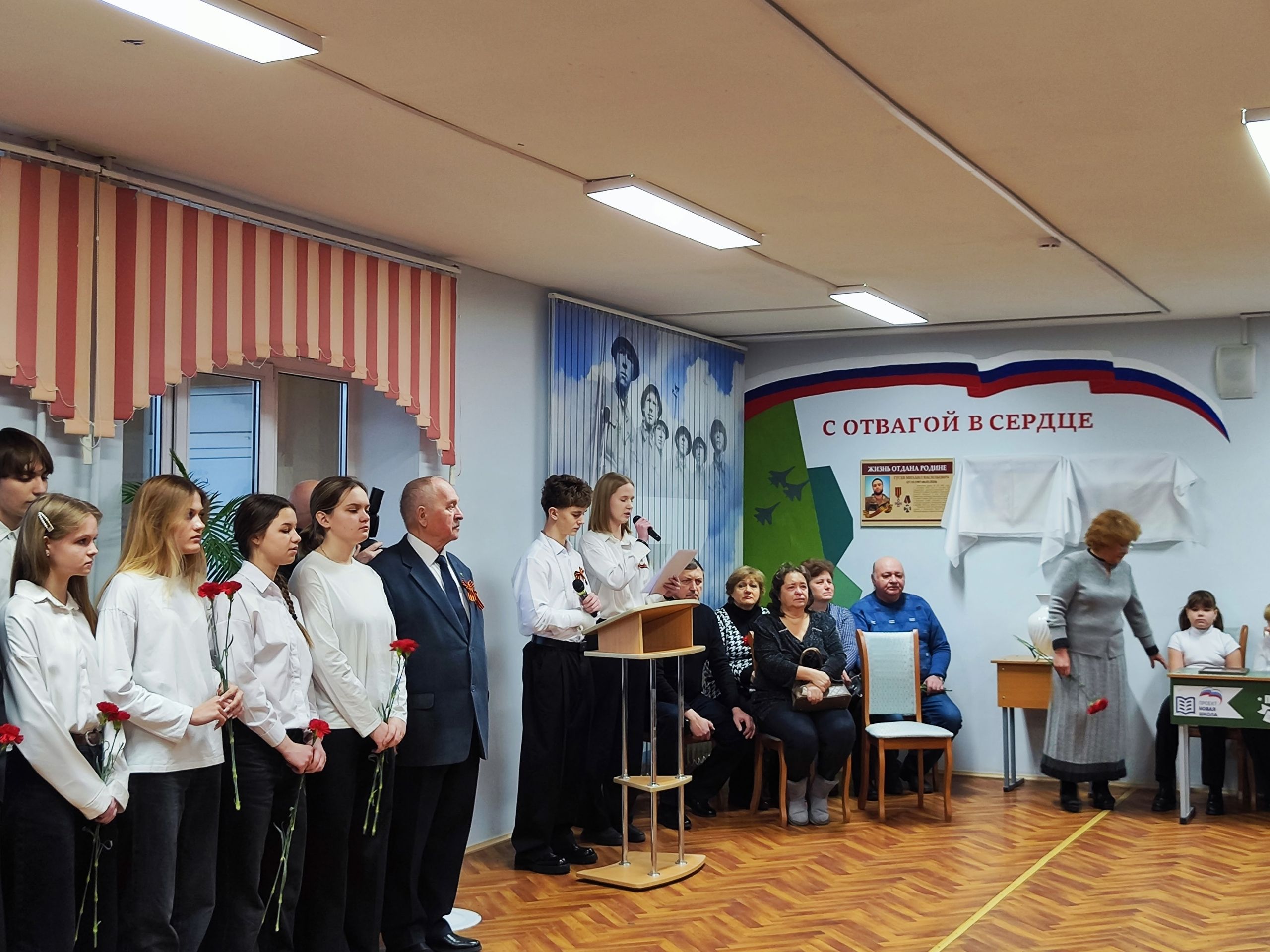 9 декабря 2025 года в День воинской славы России в День Героев Отечества, ученики, педагоги и выпускники нашей школы собрались, чтобы стать свидетелями торжественного открытия мемориальных досок памяти выпускников нашей школы, погибших при исполнении воинского долга и награжденных воинскими орденами и медалями посмертно.