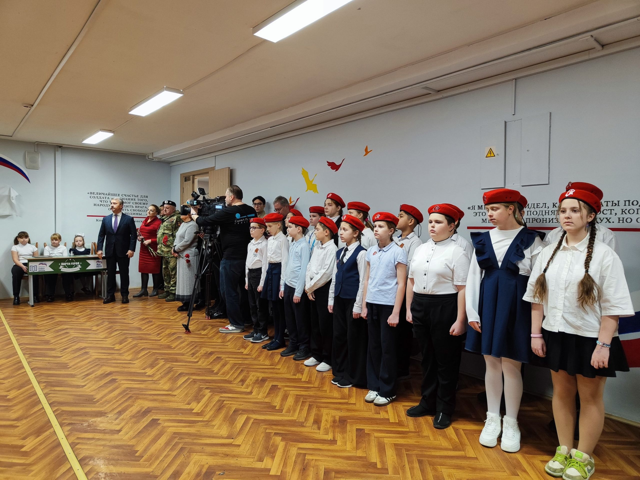 На торжественной церемонии открытия мемориальных досок всех присутствующих поприветствовали глава администрации района Андрей Анатольевич Кононов, глава муниципального образования город Кронштадт Наталия Федоровна Чашина, руководитель региональной общественной организации «Русь» Владимир Николаевич Лагожин, учителя героев, их одноклассники и родственники.
