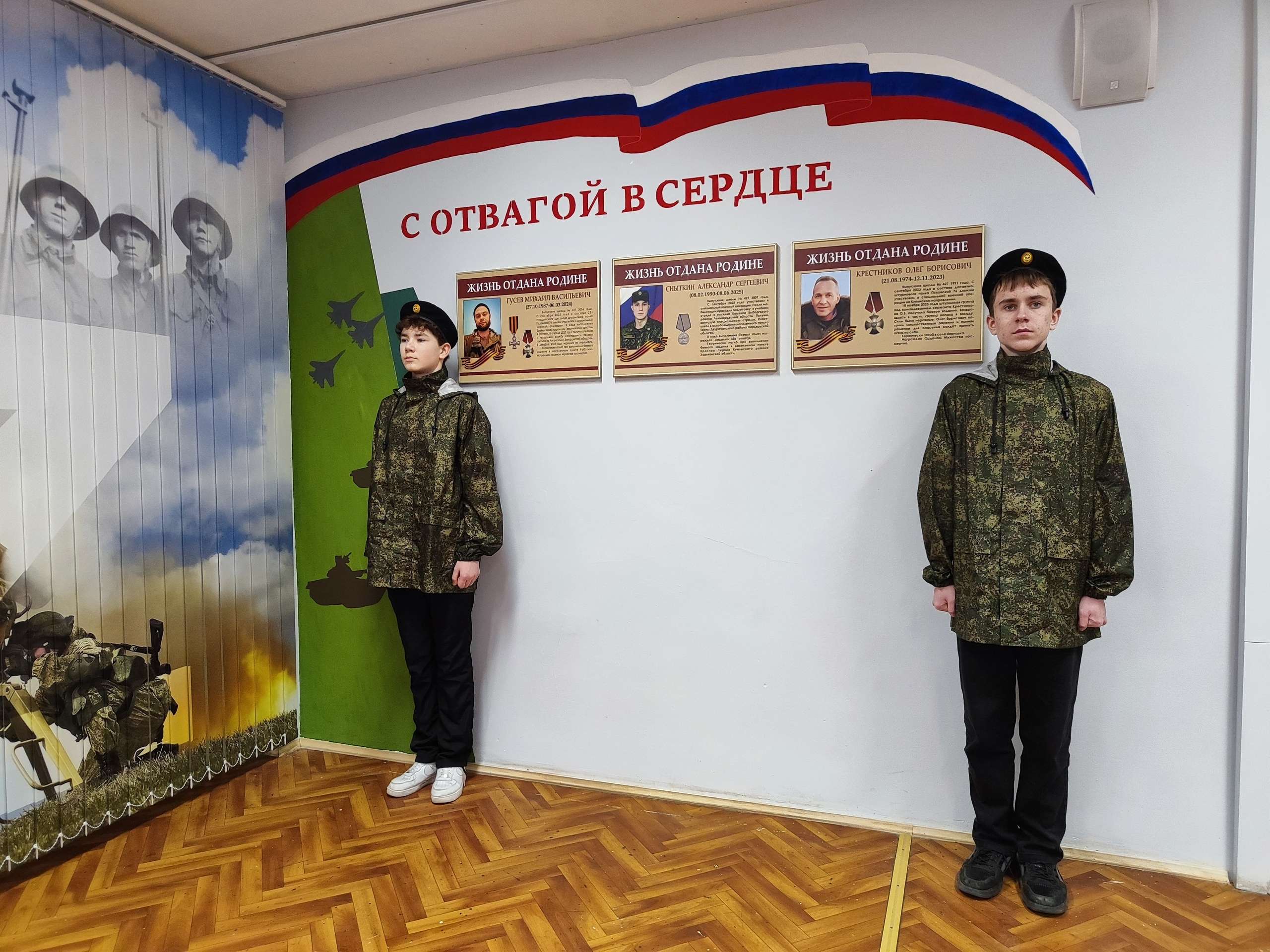 Наши юнармейцы из 8А класса несли почетный пост у памятных досок наших выпускников, погибших при исполнении воинского долга на специальной военной операции.