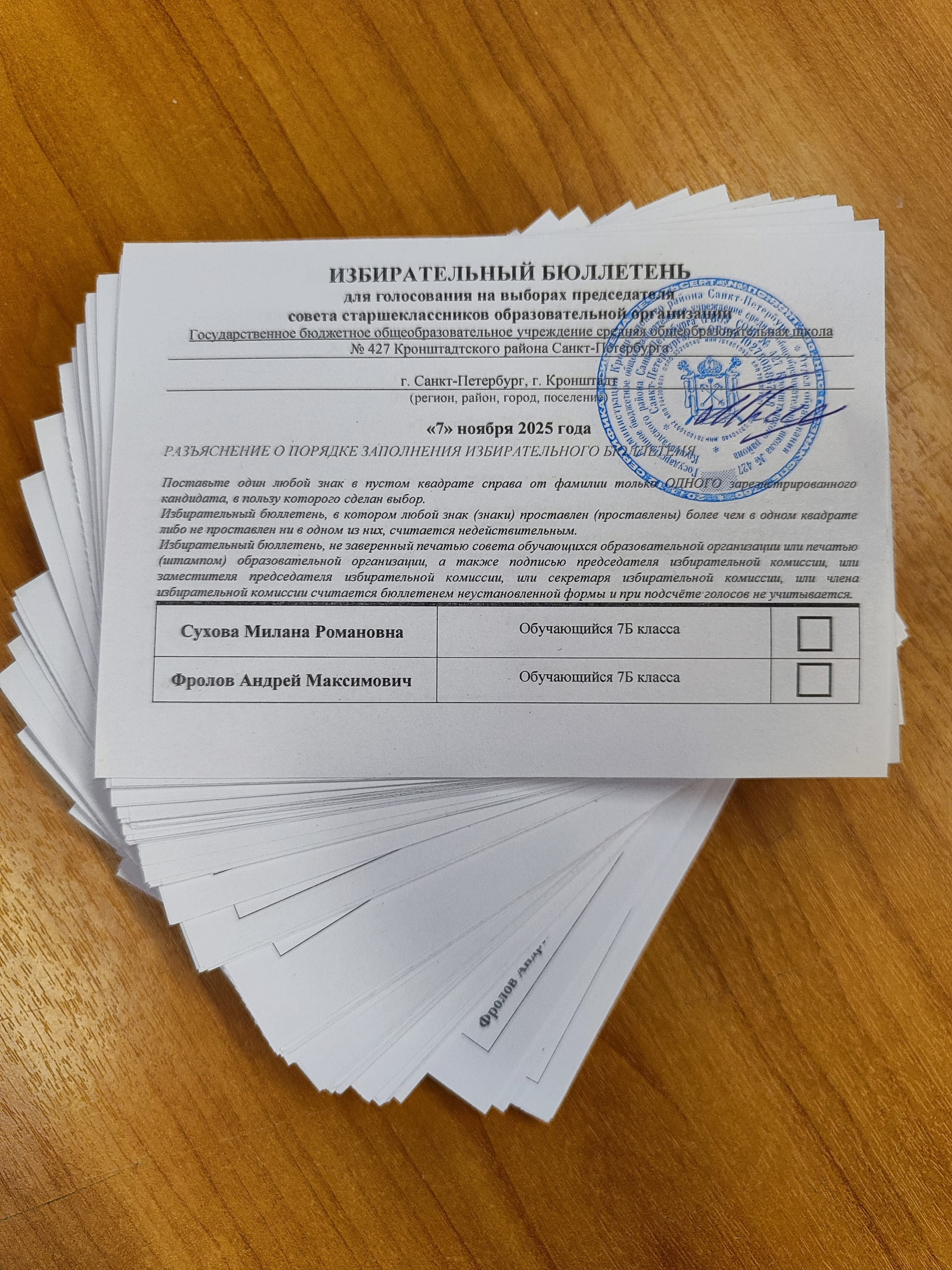 7 ноября 2025 г. в нашей школе прошли выборы председателя Совета старшеклассников.